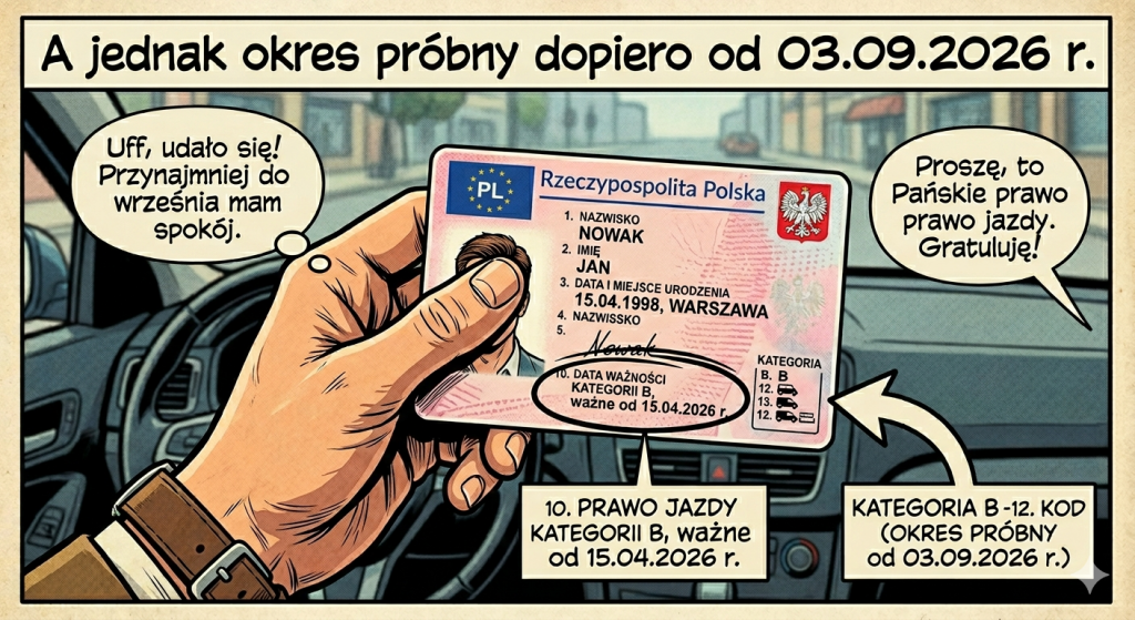 W pkt 2 doprecyzowuje się, że okresowi próbnemu, o którym mowa w znowelizowanym rozdziale 14 ustawy o kierujących pojazdami, będą podlegać wszyscy, którzy przed dniem rozpoczęcia stosowania tych przepisów (tj. przed 4 września 2026 r.) nie uzyskali prawa jazdy kategorii B. Powyższa zmiana jednoznacznie określa, że uzyskanie uprawnień do kierowania innymi pojazdami niż w zakresie kategorii B (np. kat. A, AM, B1 lub T) nie wyłącza stosowania nowych rozwiązań dotyczących okresu próbnego. Jednocześnie proponowane brzmienie nie pozostawia wątpliwości, że prawo nie działa wstecz, a zatem nowe przepisy będą miały zastosowanie do zdarzeń zaistniałych po rozpoczęciu stosowania tych przepisów, co ma na celu ochronę bezpieczeństwa prawnego obywateli.